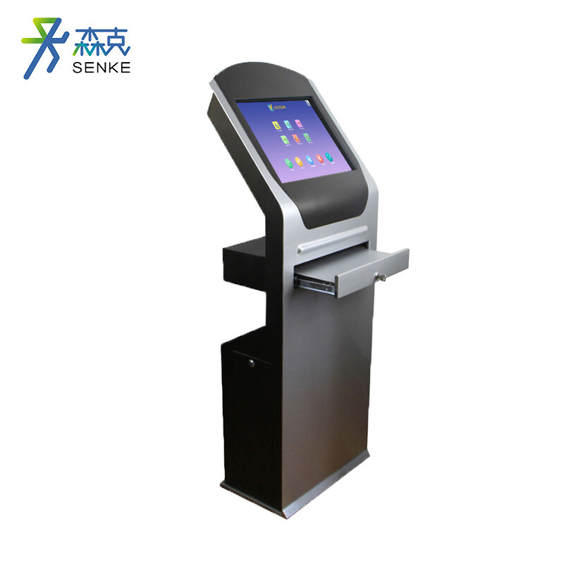 森克SK-21.5BDGB】森克 触摸屏查询一体机自助终端机多功能排队叫号机医院银行政务大厅机柜 电容屏 抽屉/键盘托款